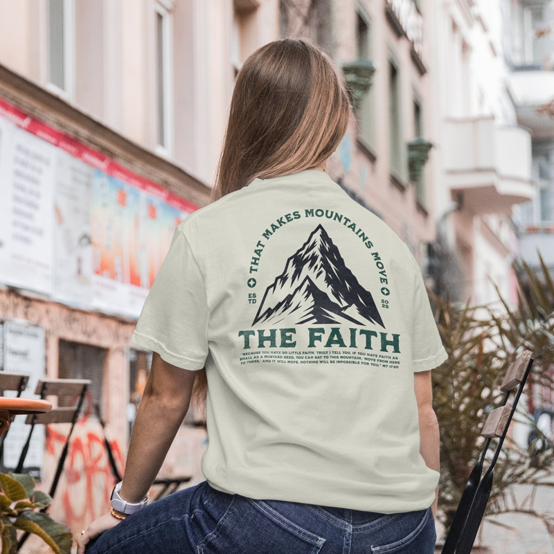 A camiseta FAITH traduz o conceito da fé que move montanhas: baseada em Mateus 17:20, ela expressa a confiança inabalável no poder de Deus diante dos obstáculos da vida. A arte exclusiva simboliza que nossa fé é capaz de superar qualquer desafio. Modelagem unissex de corte confortável e tecido 100% algodão premium garantem versatilidade e durabilidade para o dia a dia. A estampa principal nas costas cria impacto visual, enquanto o logo discreto no peito oferece elegância sutil. A impressão DTG de alta qualidade preserva todos os detalhes gráficos e a legibilidade da mensagem bíblica. Vista seu propósito: cada compra apoia projetos sociais e leva fé além da moda. RHEINO – Moda urbana para quem crê e vive com autenticidade.