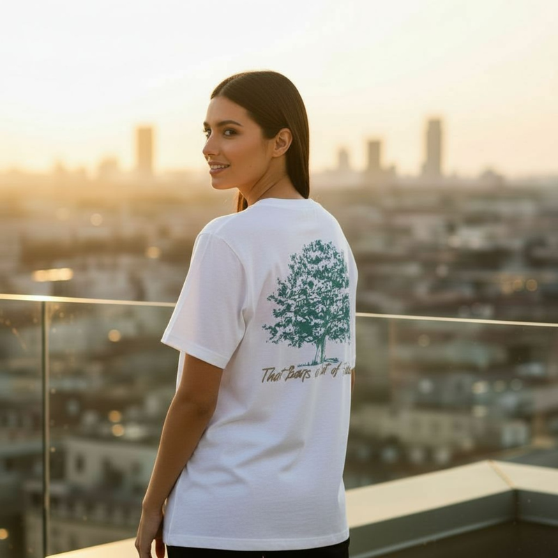 A camiseta FIG traduz o ensinamento bíblico de uma vida que frutifica: nascida da comunhão com Cristo, ela expressa maturidade, constância e bondade prática — porque a árvore é conhecida pelos seus frutos, e quem crê manifesta isso no cotidiano da cidade. A peça celebra essa verdade de forma contemporânea, levando às ruas a ideia de raízes firmes e frutos abundantes. A arte exclusiva combina frente minimalista com o lettering “THE FIG TREE” no peito e uma ilustração orgânica da figueira nas costas, acompanhada da frase “That bears a lot of fruit”. O traço em verde‑teal sobre o branco cria contraste limpo e atual, simbolizando vida, crescimento e propósito no ambiente urbano. Modelagem de corte confortável em tecido 100% algodão premium garante versatilidade e suavidade para o dia a dia. O caimento amplo valoriza a proposta street, enquanto o logo frontal discreto mantém a elegância. A impressão DTG de alta qualidade preserva a nitidez do verde‑teal, os detalhes do desenho e a leitura do lettering após sucessivas lavagens. Vista seu propósito: cada compra apoia projetos sociais e leva fé além da moda. RHEINO – Moda urbana para quem crê e vive com autenticidade.