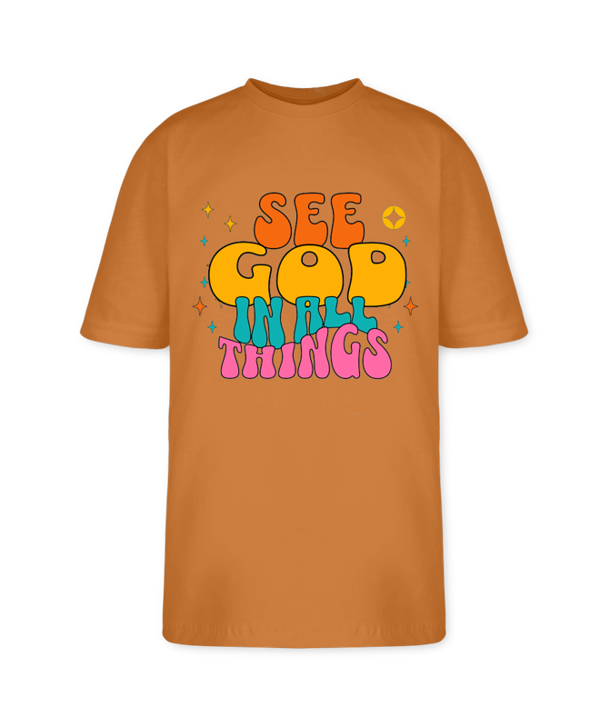 A camiseta See GOD Kids ensina desde cedo a enxergar a bondade de Deus em todas as coisas: inspirada na verdade bíblica de que Deus opera todas as coisas para o bem daqueles que O amam (Romanos 8:28), ela convida as crianças a descobrirem a presença divina no cotidiano — nos momentos de alegria, nas brincadeiras, nos desafios e até nas pequenas dificuldades que fazem parte do crescer. A arte exclusiva apresenta "SEE GOD IN ALL THINGS" em lettering colorido e divertido, com formas orgânicas em laranja vibrante, amarelo sol, verde-água refrescante e rosa alegre, cercadas por estrelas cintilantes que despertam o encanto infantil. O design celebra a capacidade única das crianças de ver maravilhas onde os adultos às vezes esquecem de olhar. Modelagem infantil tradicional com corte confortável e tecido 100% algodão premium garante liberdade total para explorar o mundo e suavidade para a pele delicada. A estampa principal frontal cria um visual impactante e positivo, enquanto as cores vibrantes refletem a alegria natural da infância. A impressão DTF de alta qualidade mantém todas as cores brilhantes e detalhes nítidos, resistindo às aventuras e lavagens do dia a dia. Formação com propósito: cada compra apoia projetos sociais e planta sementes de gratidão e fé que crescem para a vida toda. RHEINO Kids – Ensinando a ver Deus em tudo, desde pequeno.