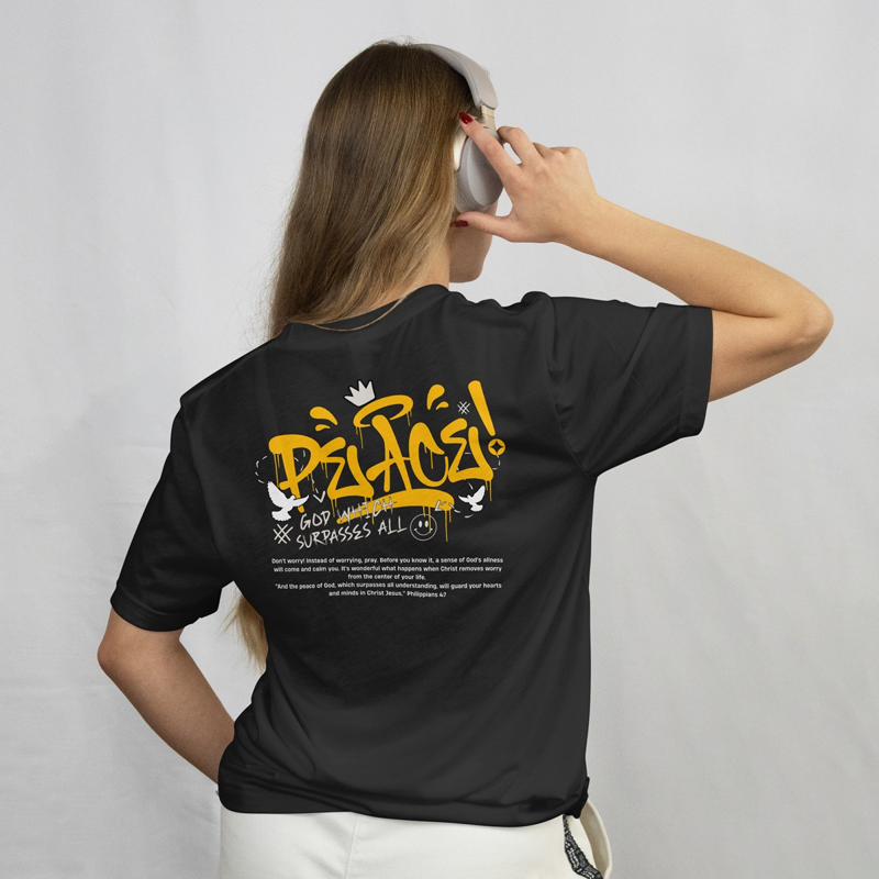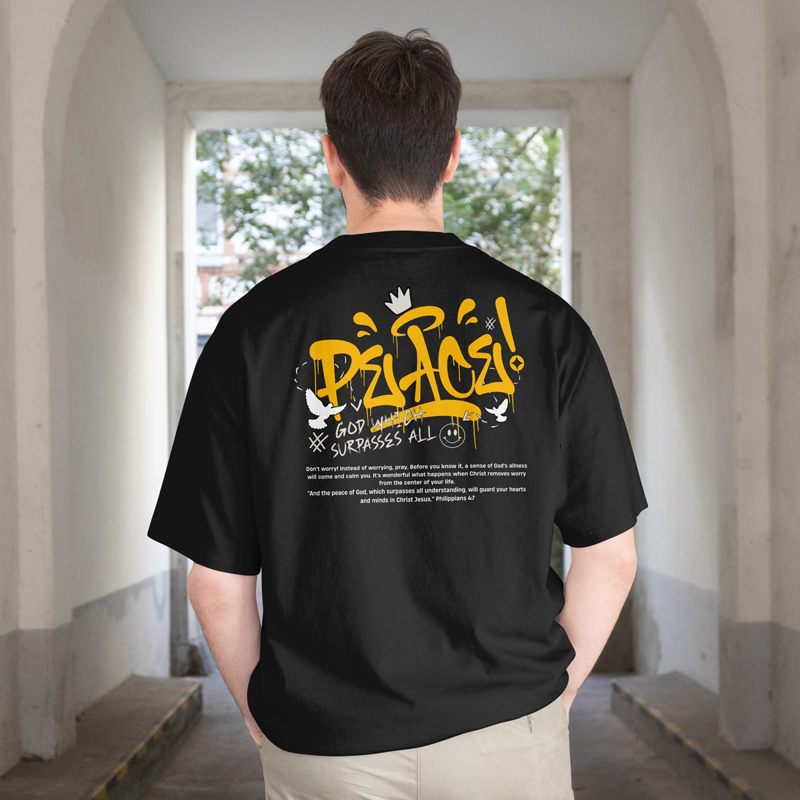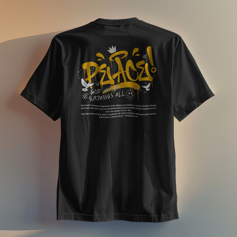 A camiseta PEACE traz uma declaração ousada de fé através do design graffiti urbano em dourado vibrante. Inspirada na paz que excede todo entendimento (Filipenses 4:7), esta peça representa o encontro entre a cultura street e a espiritualidade cristã, mostrando que a verdadeira paz vem de Cristo. O estilo graffiti com pingos e respingos comunica autenticidade urbana, enquanto o símbolo da estrela de quatro pontas simboliza a luz divina que orienta o caminho. Design pensado para homens que vivem a fé com intensidade nas ruas. Modelagem masculina confortável, corte tradicional e tecido 100% algodão premium garantem durabilidade e estilo para o dia a dia urbano. A impressão DTF de alta qualidade preserva a intensidade das cores e a autenticidade do design graffiti. Vista a paz que transforma: cada compra apoia projetos sociais e leva esperança às cidades. RHEINO – Moda urbana para quem crê e vive com autenticidade.
